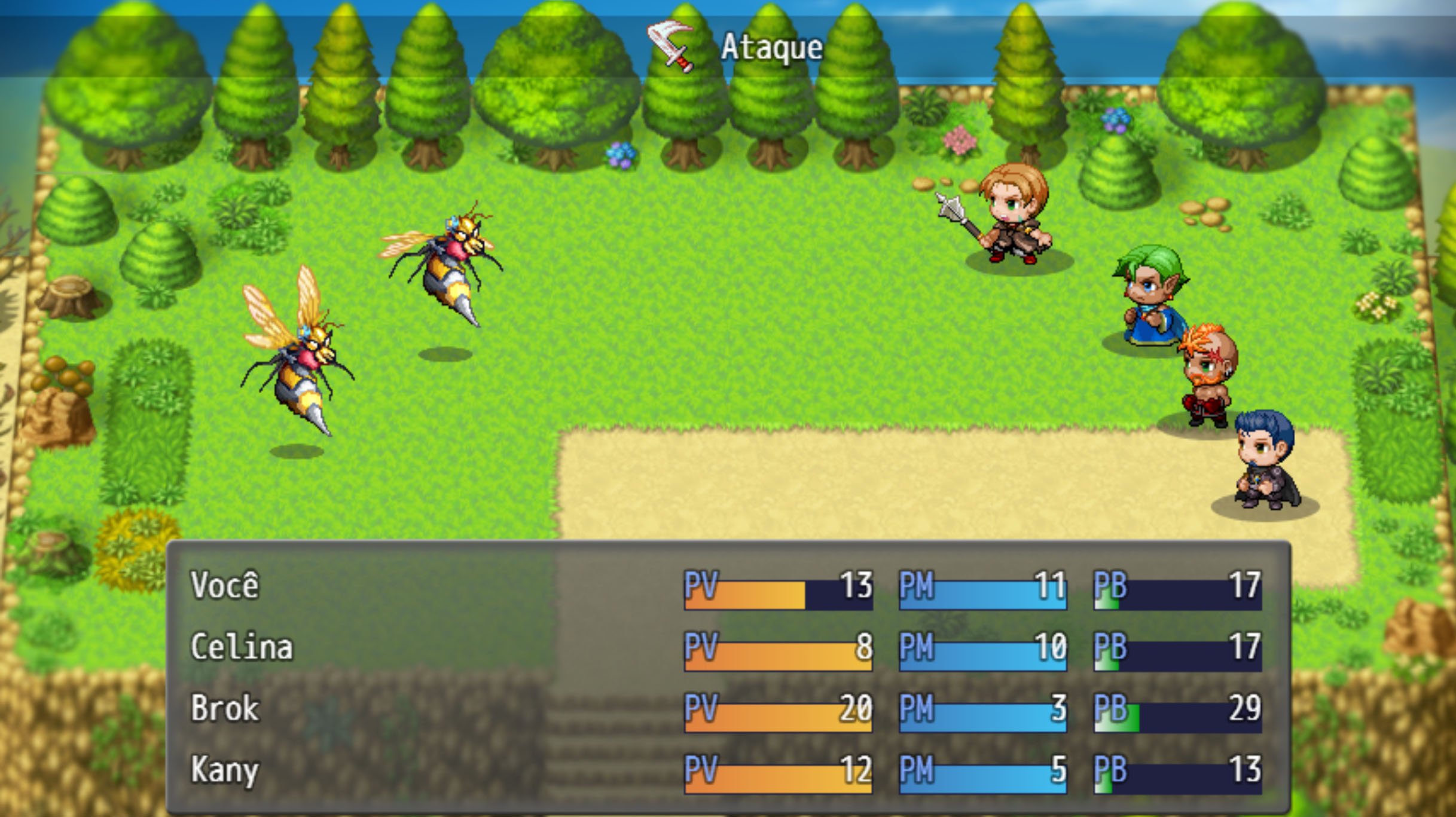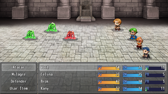 Trilha sonora atmosférica: músicas inspiradas nas músicas clássicas dos primeiros RPG Makers, com temas para cada vila, templo e batalha.